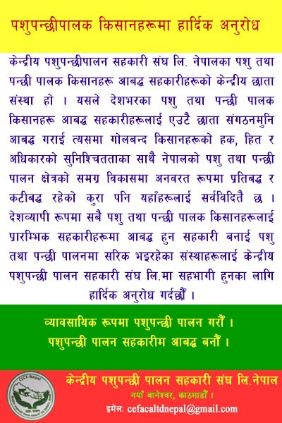 • पशुपन्छीपालक किसानहरुलाई हार्दिक अनुरोध