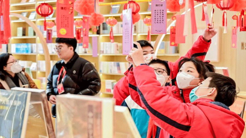 Children guess lantern riddles in Yangpu District, east China’s Shanghai, Feb. 5, 2023. People celebrate the Lantern Festival, the 15th day of the first month of the Chinese lunar calendar, with various traditional customs across the country. Photo: Xinhua