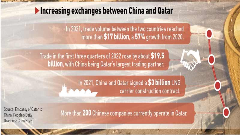 Qatar’s diplomacy believes that peace is more than the absence of violence, and that lasting peace is based on just solutions that need to promote human development. Therefore, Qatar aims for good relations with all countries. We have good relations with the United States, and we also maintain good relations with China. The trade volume between Qatar and China will rise to $17 billion in 2021, a 57 percent increase compared with the previous year. Trade in the first three quarters of 2022 rose by about $19.5 billion, with China being Qatar’s largest trading partner.