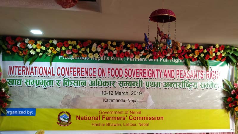 काठमाडौं, राष्ट्रिय किसान आयोगको आयोजनामा फाल्गुण २६ देखि २८ गतेसम्म खाद्य सम्प्रभुता र किसान अधिकार सम्वन्धी प्रथम अन्तराष्ट्रिय सम्मेलन काठमाडौंमा हुने भएको छ ।