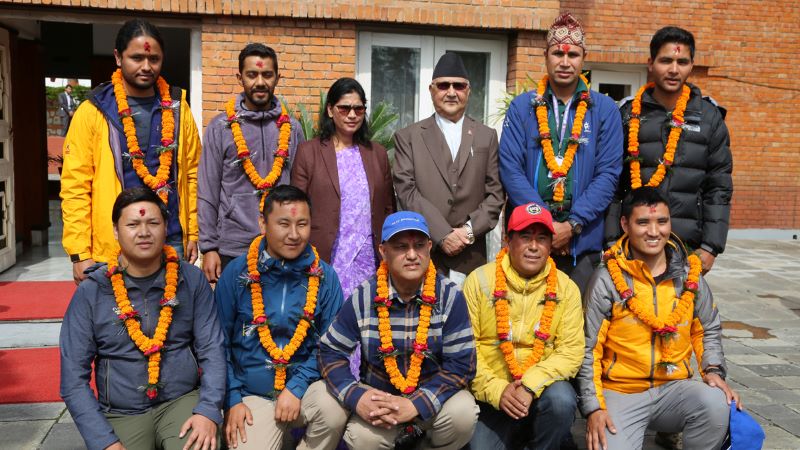 प्रधानमन्त्री ओलीले टोलीलाई लक्ष्य हासिल गर्नका लागि शुभकामना दिनुभयाे । उहाँले मौसम र स्वास्थ्यलाई ख्याल गर्न टाेलीलाइ सुझाउनुभयाे । ‘लक्ष्यमा अडिग रहनुहोस तर स्वास्थ्यले साथ दिएन वा मौसम प्रतिकूल भयो भने जिद्धी नगर्नुहोस । सगरमाथा त्यहीं हुन्छ । अर्कोपटक गएर नापेर आए हुन्छ ।’ प्रधानमन्त्री ओलीले थप्नुभयाे – ‘गाइडको निर्देशन पालना गर्नुहोला ।’