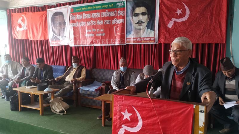 काठमाडौँ । अखिल नेपाल किसान महासंघ (क्रान्तिकारी केन्द्र) का अध्यक्ष तथा वरिष्ठ किसान नेता क. चित्रबहादुर श्रेष्ठले किसानहरु नेपालको सामाजिक क्रान्तिका आधारभूत वर्ग र क्रान्तिका संवाहक भएको बताउनु भएकोले अब फेरि एकपटक जुरुक्क उठ्नुपर्ने बेला आएको बताउनु भएको छ । आज काठमाडौँको पेरिसडाँडामा आयोजित माओवादी केन्द्रको किसान संगठनको दुई दिने वागमती प्रदेश स्तरीय भेला तथा प्रशिक्षणको उद्घाटन गर्दै सो कुरा बताउनु भएको हो ।