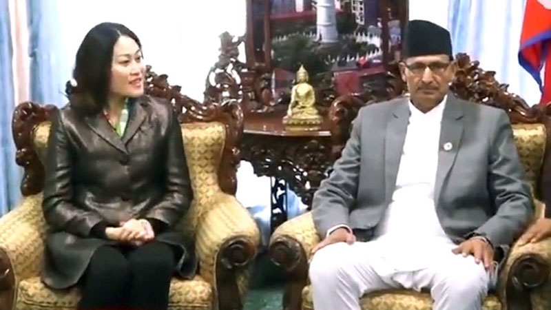 हिजो संघीय संसदको सभामुख पदमा निर्वाचित अग्निप्रसाद सापकोटाले आज बिहान मात्रै पद तथा गोपनियताको सपथग्रहण गर्नुभएको थियो । सपथ ग्रहणपश्चात आजै कार्यभार ग्रहण गर्नुभएका सभामुख सापकोटा र चिनियाँ राजदूत यान्छीको बिचमा सिँहदरबारस्थित सभामुखको कार्यकक्षमा शिष्टाचार भेटघाट भएको थियो । भेटघाटको क्रममा राजदूत यान्छीले सभामुखमा निर्वाचित हुनुभएकोमा सापकोटालाई हार्दिक बधाई तथा सफल कार्यकालको शुभकामना दिनुभएको थियो ।